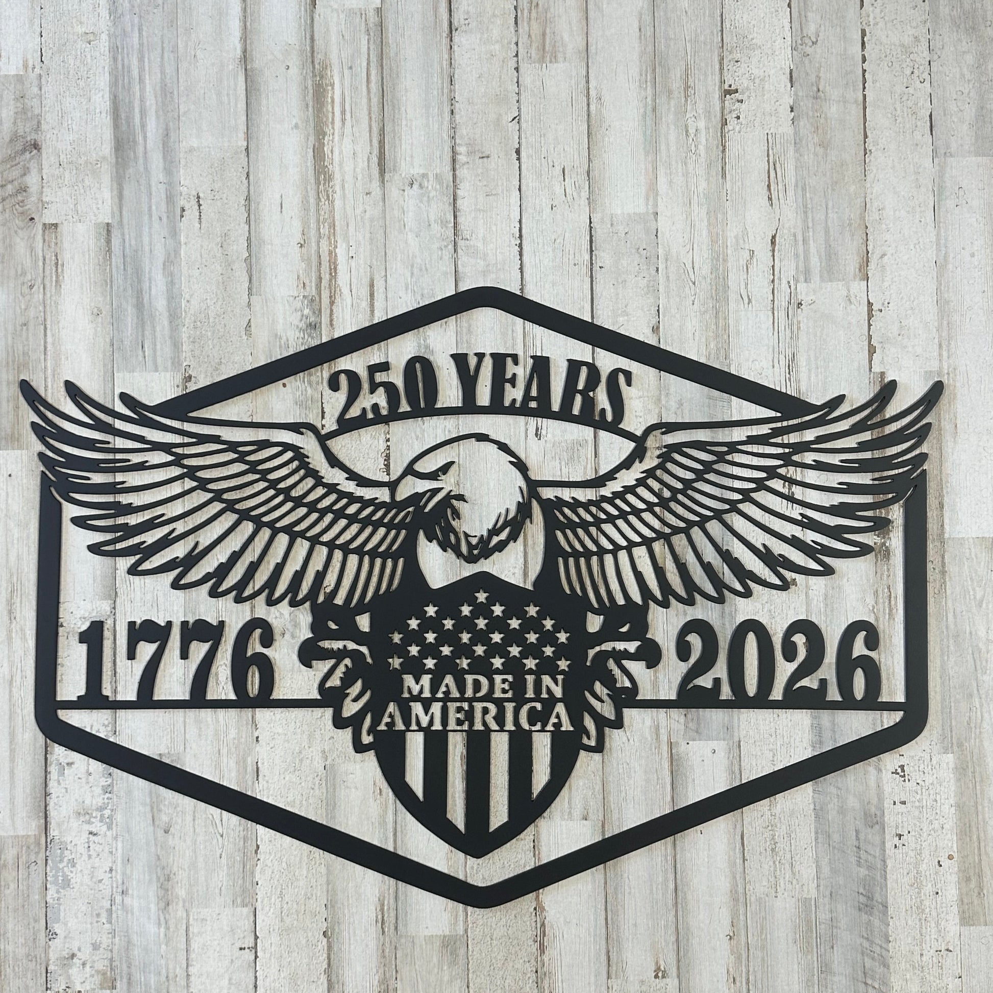 250-year anniversary American sign. 30 inches wide 20 inches tall. Three styles to choose from.